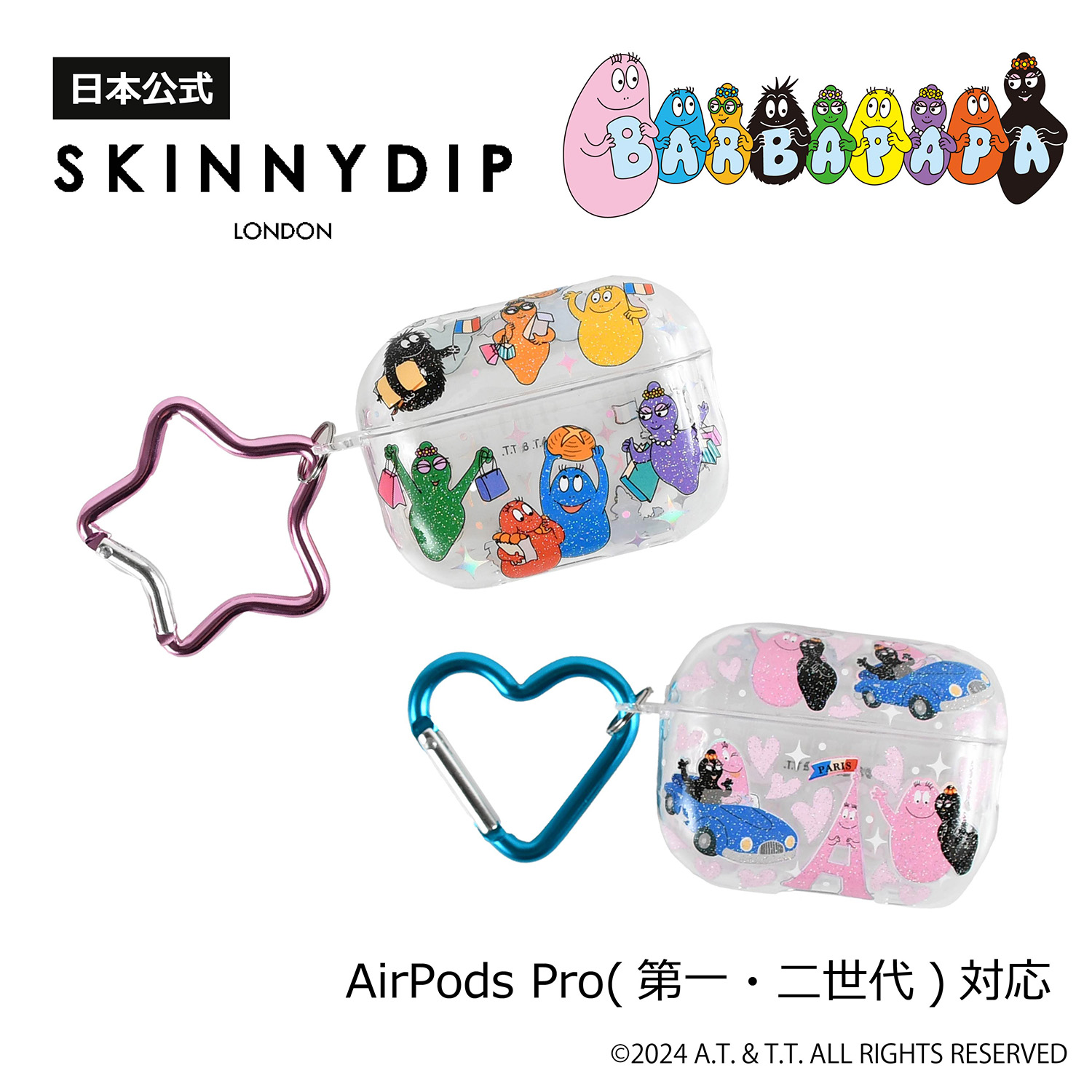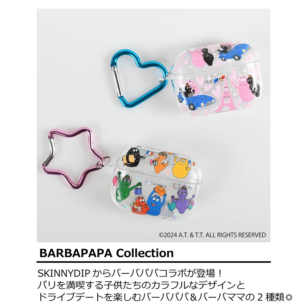 SKINNYDIPからバーバパパコラボが再登場!バーバパパファミリーの魅力がたくさん詰まったポップでカラフルなAirPods用ケース。落下防止用のカラビナ付きで機能性も抜群!