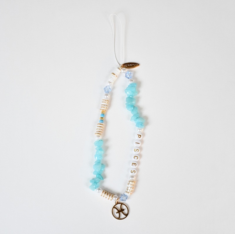 12星座をイメージしたビーズがキュートなフォンストラップです。