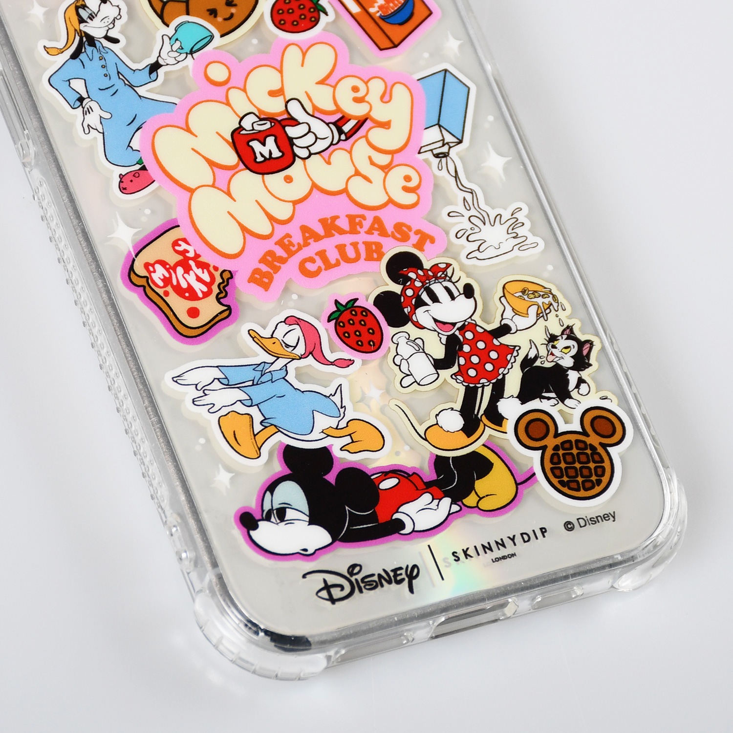 - SKINNYDIP iPhone用ケースにミッキーと仲間たちが登場!寝起きのミッキーはどんな朝食がお気に入り?カラフルで朝から元気が出るデザイン!クリアベースを使用しているため、iPhone機器本体のカラーとのコーディネートが楽しめます。本体は耐ショック仕様なため、iPhone本体をしっかりと守ってくれます。