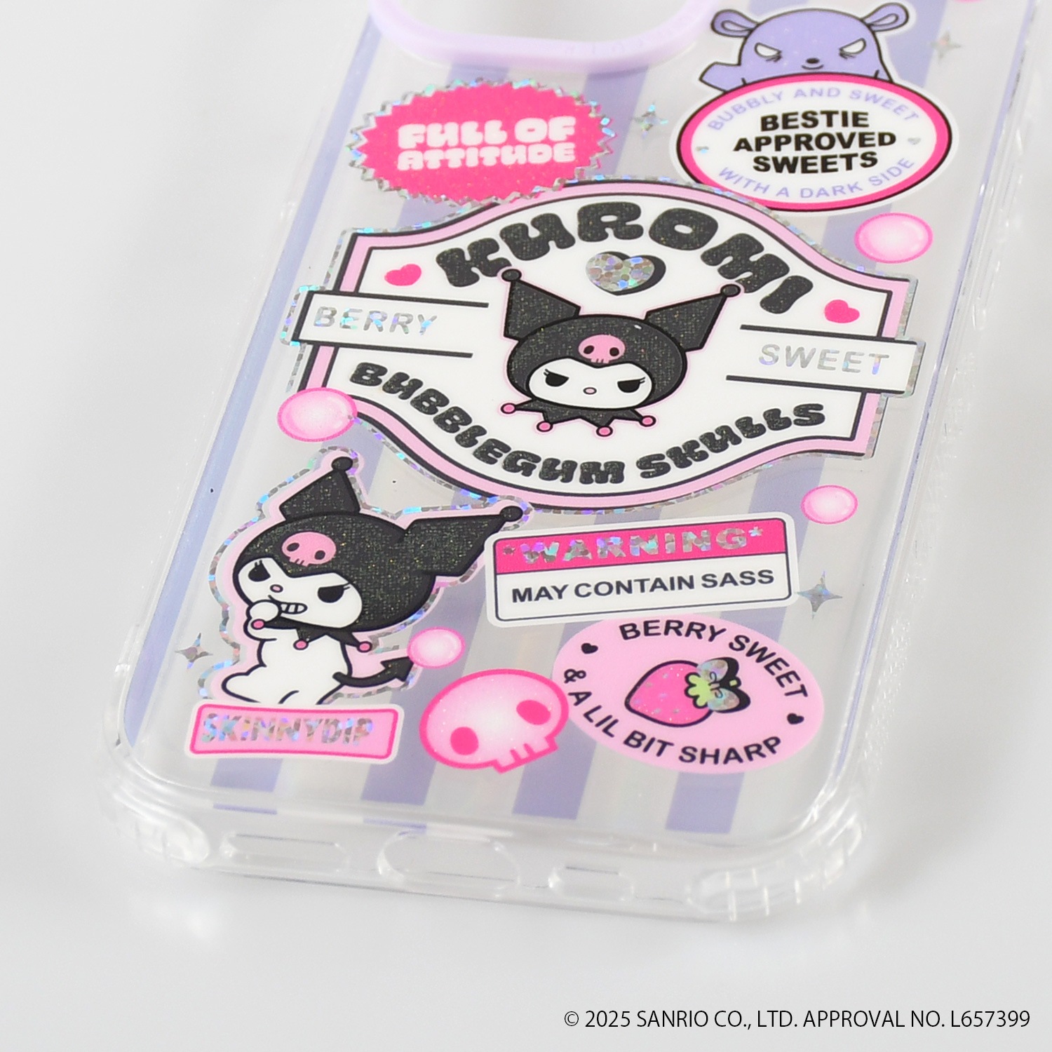 クロミ、マイメロディ、ハローキティがお菓子のパッケージやキャンディ、ガムなどをイメージしたカラフルでスイートなデザインに。