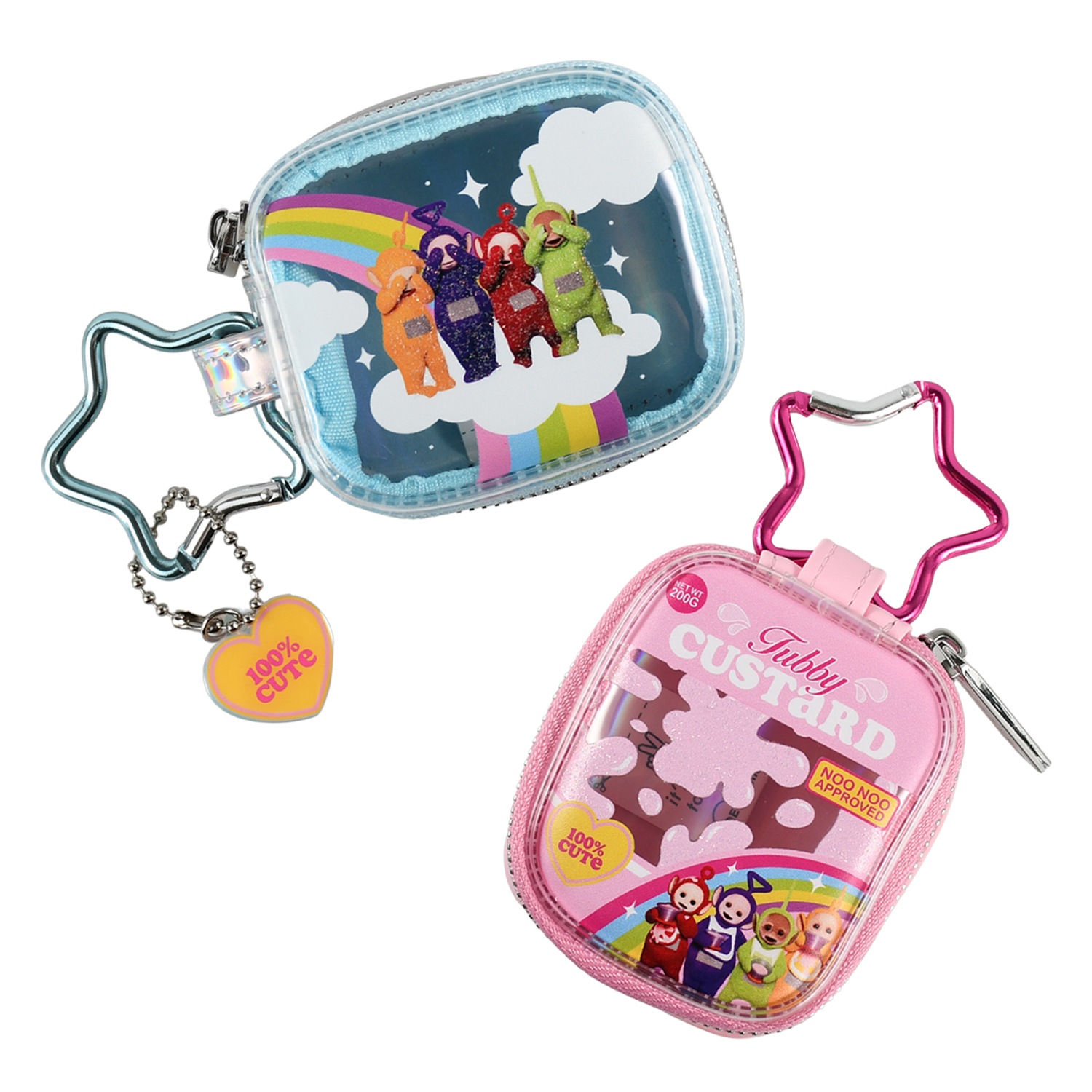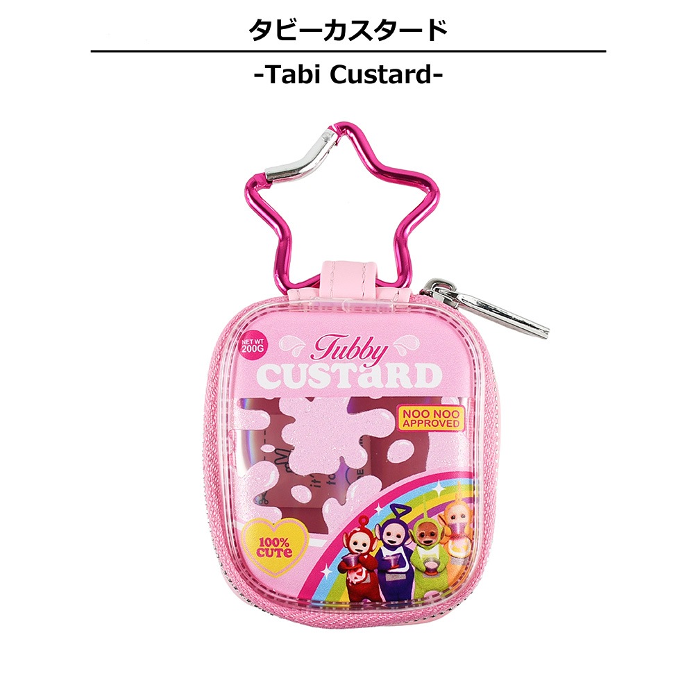 テレタビーズが大好きなタビーカスタードをモチーフにしたデザインと、虹と雲をモチーフにしたデザインのワイヤレスイヤホンケース。